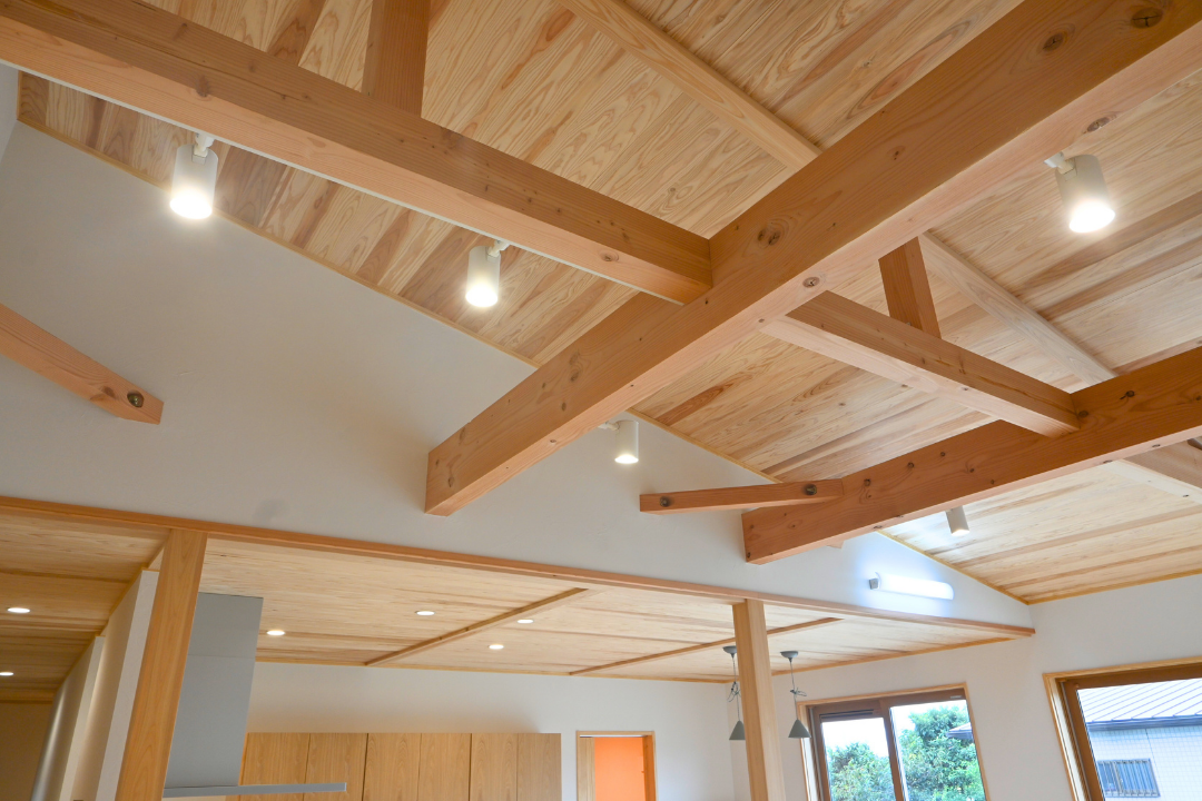 床や天井に使用した無垢の木は、素足で歩いたときの心地よさや、調湿性による快適な室内環境も魅力。